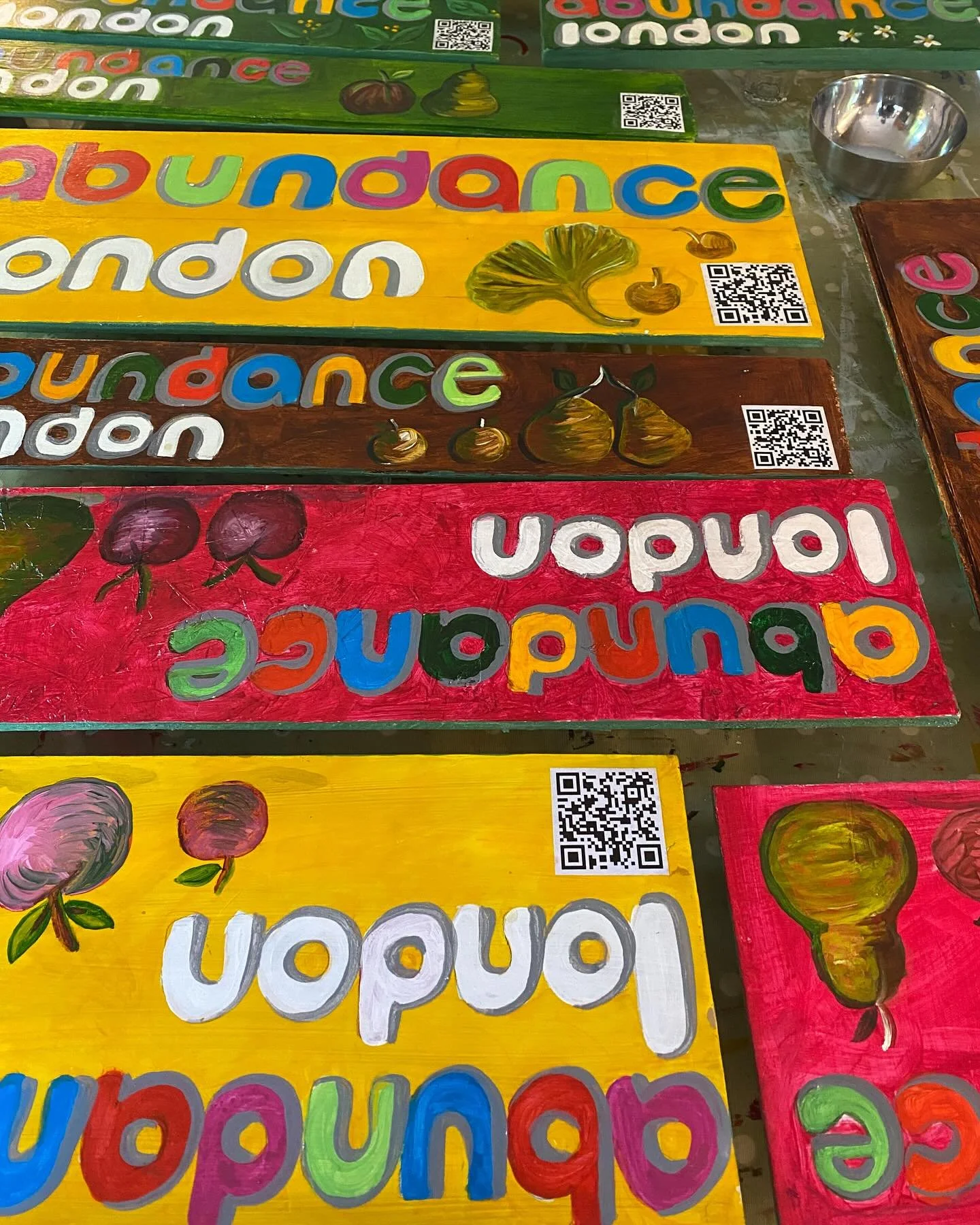 View fullsize My little (actually not so little!) holiday project is painted, varnished and now delivered after 6 absorbing days to the ever amazing @abundancelondon 14 brand new signs ready for new sign posts and brand new blooming gardens around Chiswick. Charit