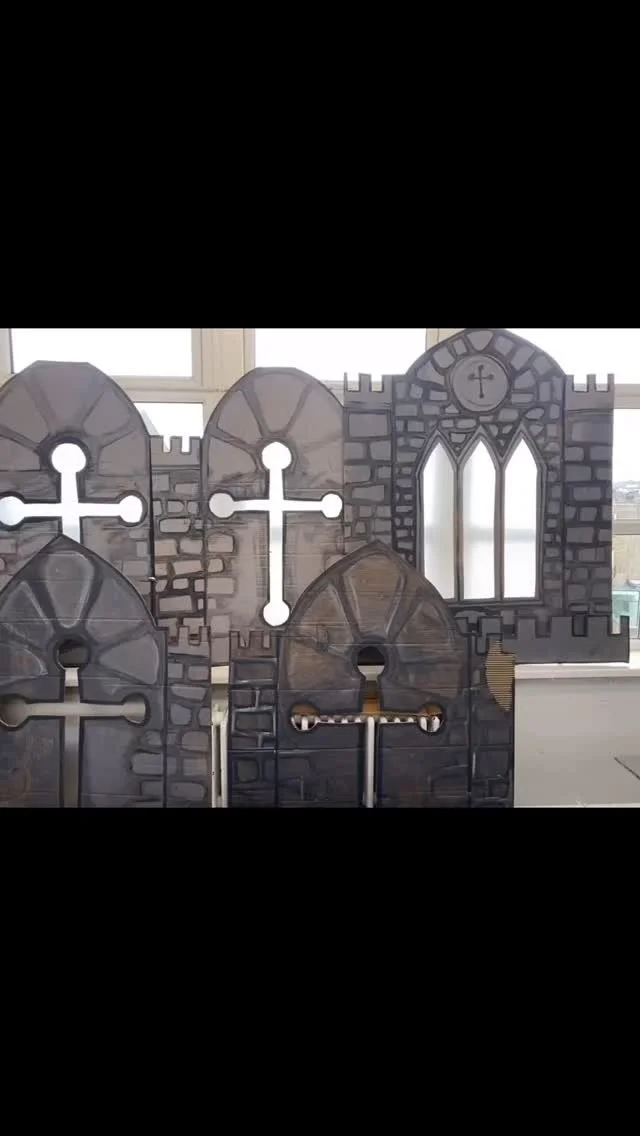 View fullsize Things I made from cardboard PART 7: MACBETH is done!!! It was dark, moody and I had epic remote control candles added to the chandelier’s this time. I LOVE THEM 😍 and I keep turning them on and off in the art room with my battery operated wan