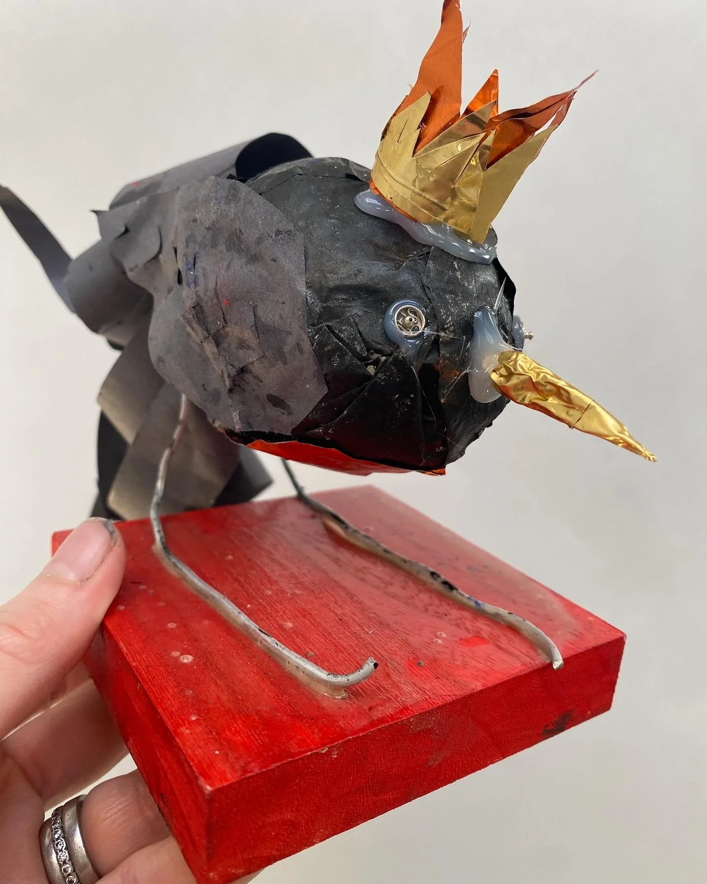 View fullsize This year’s Y3 papier-mache fledglings have now flown…. I love them every single year. Made from scrap foil, hand painted papers, card and wire and everyone as delightful as the next. What a glorious spring they are heading into!! 🐦 🦒